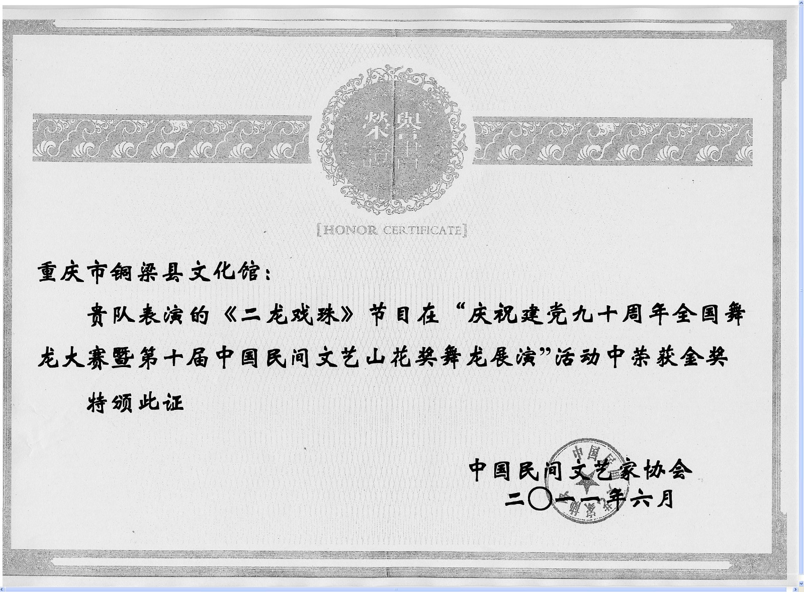 銅梁龍舞授牌